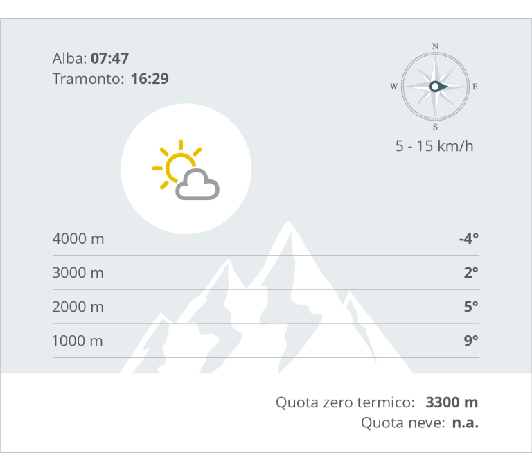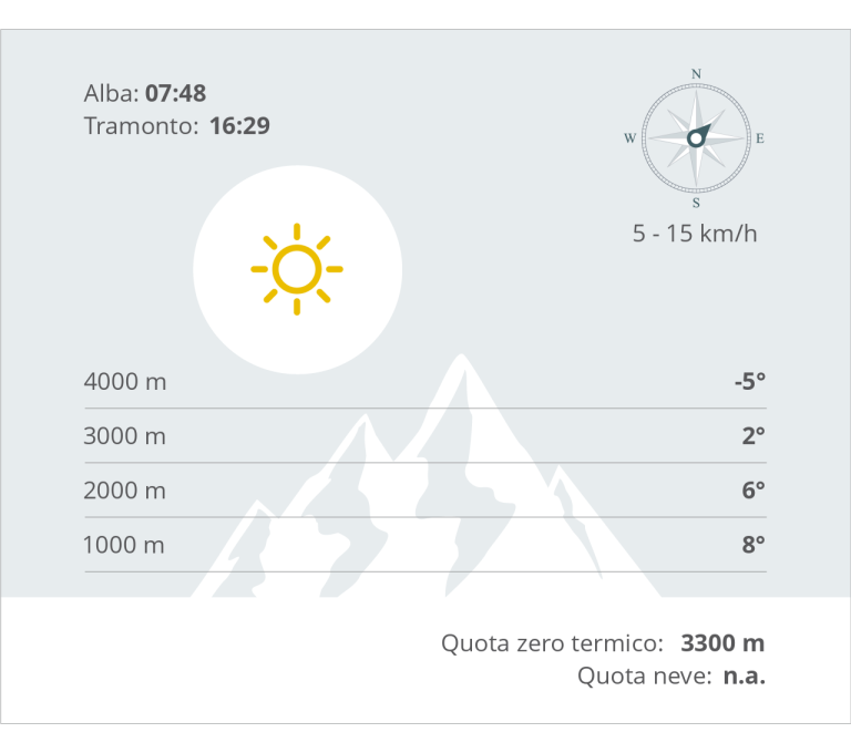 Per tutta la settimana un promontorio interesserà la montagna veneta accompagnato da un'avvezione di aria mite per il periodo con lo zero termico che toccherà i 3400-3500 m nella giornata odierna. In questa stagione tale avvezione, sempre più frequente, determinerà una marcata inversione termica nelle valli, favorendo anche il formarsi di qualche nebbia in alcune depressioni prealpine durante le ore più fredde.